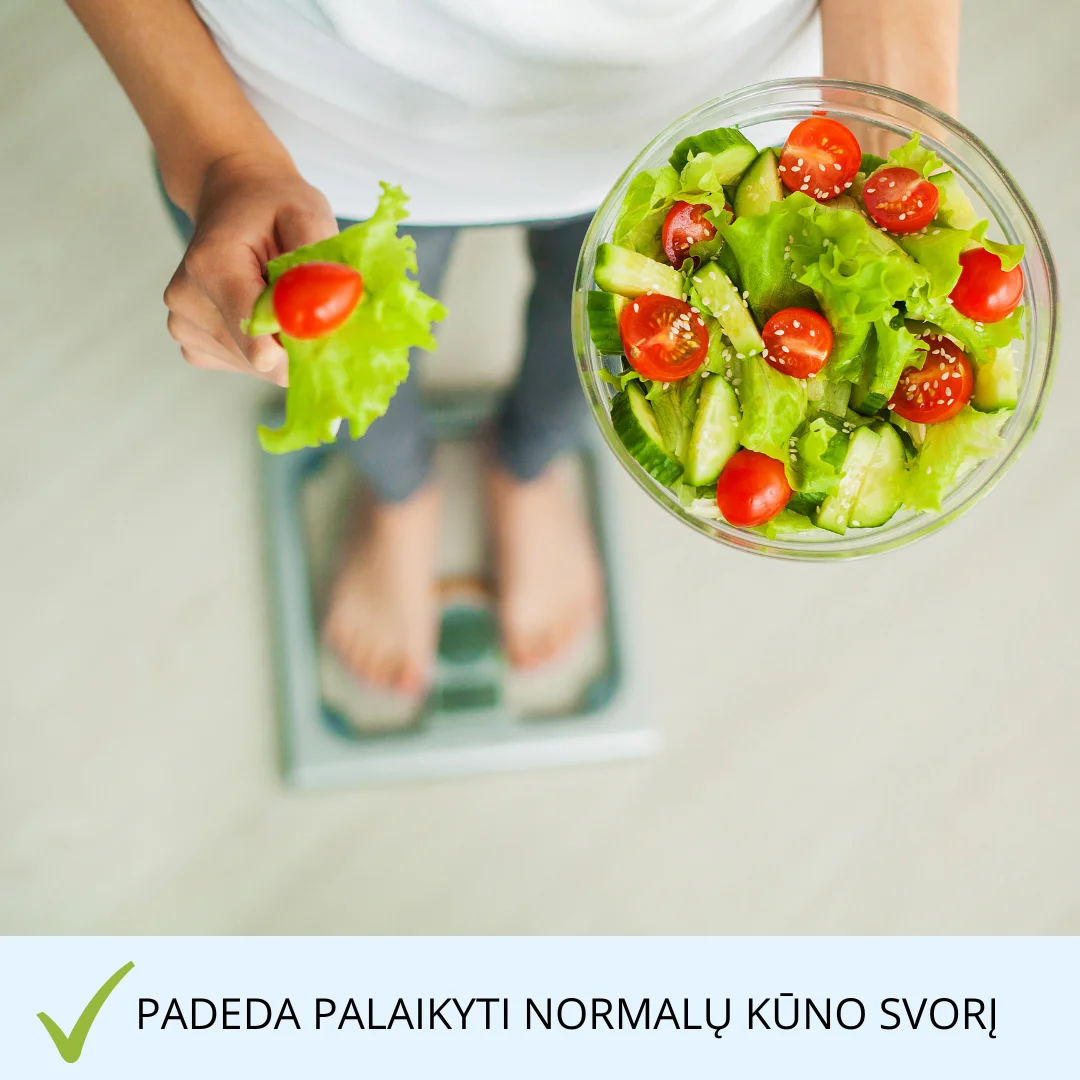 - Prisideda prie normalaus kūno svorio palaikymo
