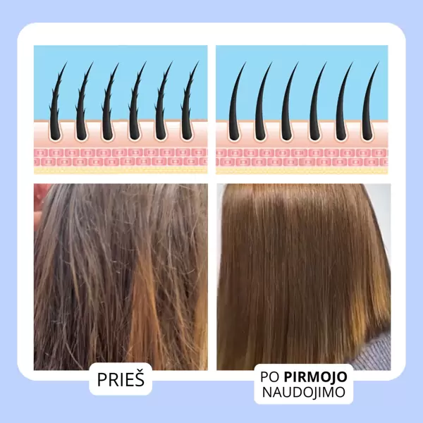 - Plaukai tampa šilkiniai, blizgūs ir be garbanojimosi