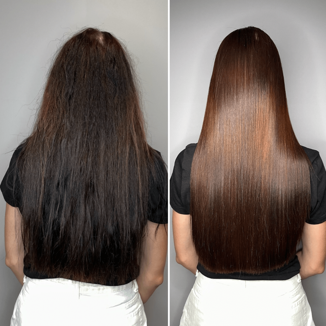 | Keratinas - prasiskverbia į plauko vidų, užpildo visas pažeistas vietas, suteikia plaukams vientisumo, neleidžia šakotis. | ![]() |