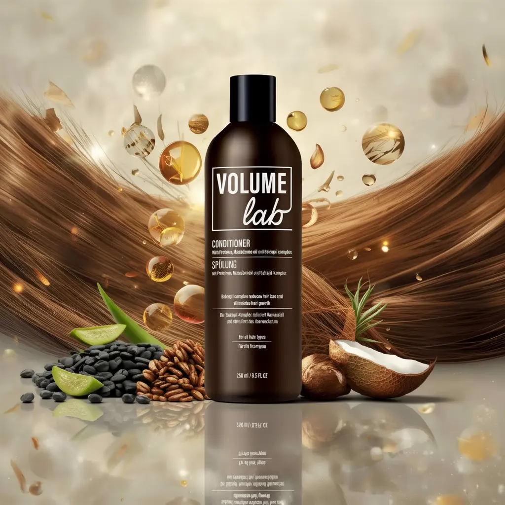 Specialios sudėties VOLUME LAB kondicionierius su makadamijų aliejumi ir baltymais, kurie skirti apsaugoti plaukus nuo lūžinėjimo ir žalingo aplinkos poveikio, išlaikyti juos pridrėkintus ir žvilgančius.